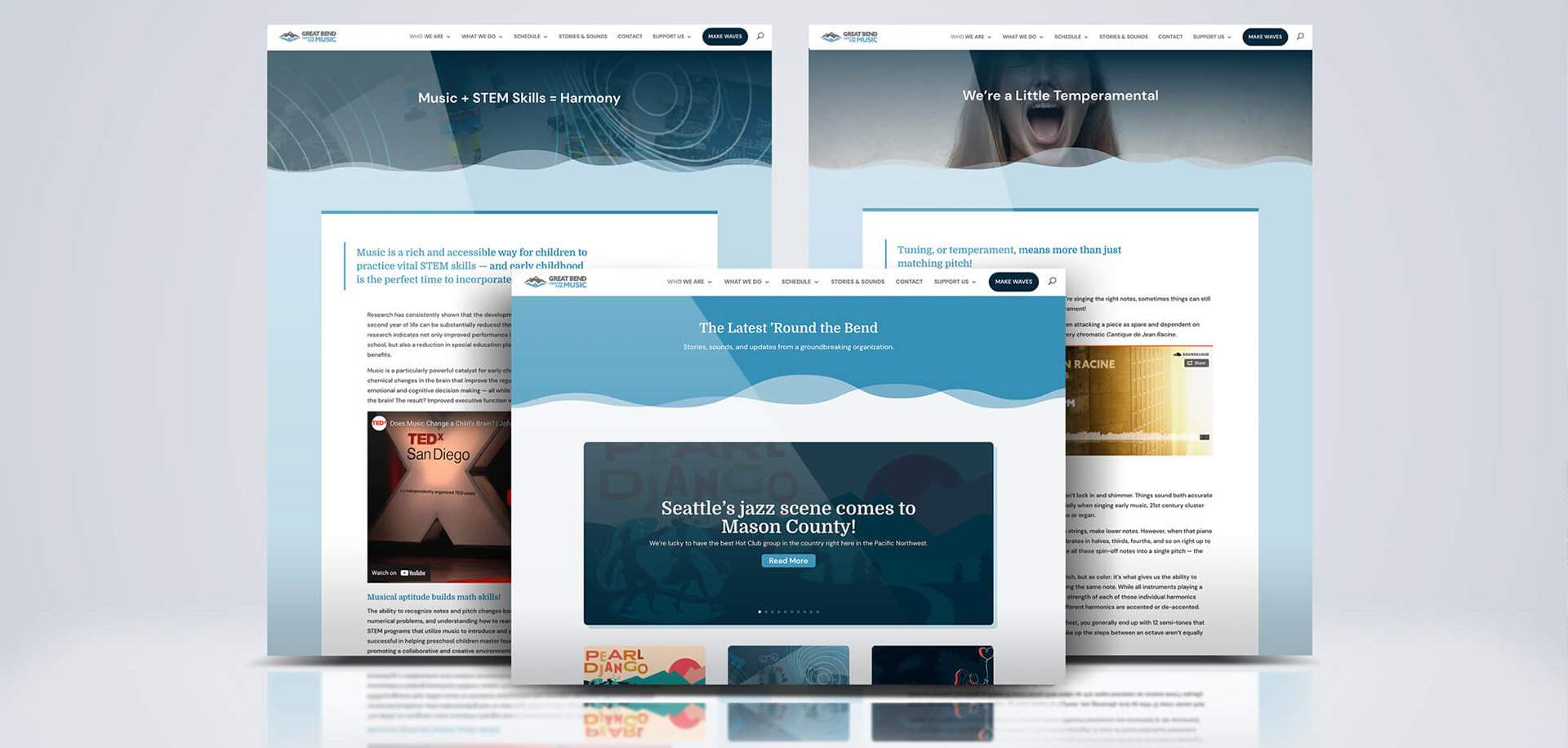 The content and design for Great Bend Center for Music’s website was overhauled and lovingly maintained by me in my role as the Director of Content & Engagement (i.e. marketing director) for this non-profit using music as a tool for community building. It was designed in Figma and brought into an extensively customized Wordpress theme and included an events calendar, online donations, programming information, gated content for students, and blog.